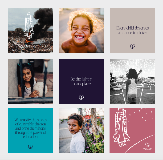 From brand guidelines to the brand manifesto, activation campaign ideas, tone of voice, and marketing materials. Love Light + Melody gave me the opportunity to put words to a cause that’s more important than anything: helping vulnerable children around the world.